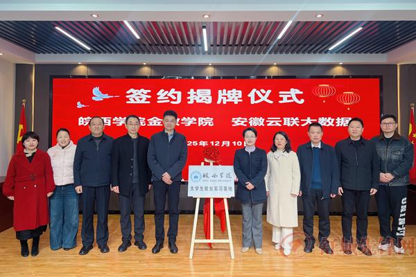 在安徽云聯大數據技術有限公司座談時,胡林娜詳細介紹了學院的辦學歷史、專業特色、人才培養模式及近年來在學科建設與科學研究方面取得的成果。她強調,要發揮皖西學院人才優勢、專業優勢,為地方發展貢獻學院力量。邱前東介紹了舒城縣產業發展情況和人才工作情況,他指出,希望以此次對接為起點,與學院攜手共進,建立常態化溝通機制,推動產學研合作,打造資源共享、優勢互補的校地企共贏新樣板。隨后,雙方簽訂合作協議,并就設立“皖西學院大學生就業實習基地”舉行揭牌儀式。